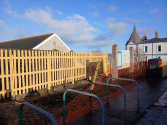 In 2024 we had leased the land between the bike racks and the gable-ended building. This was the area where the up station building was. Under the bike racks are the tiles that made up the walkway from the access slope to the booking office.